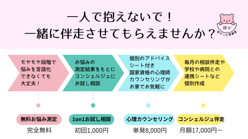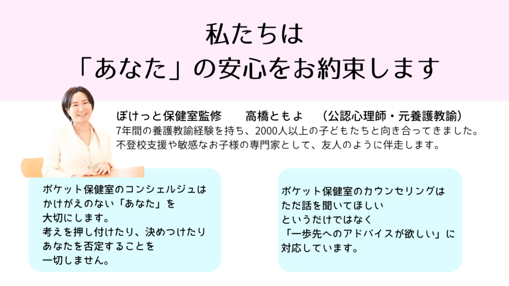 ぽけっと保健室は、そんな親御さんの悩みをしっかり受け止め、LINEを通じて365日寄り添います。